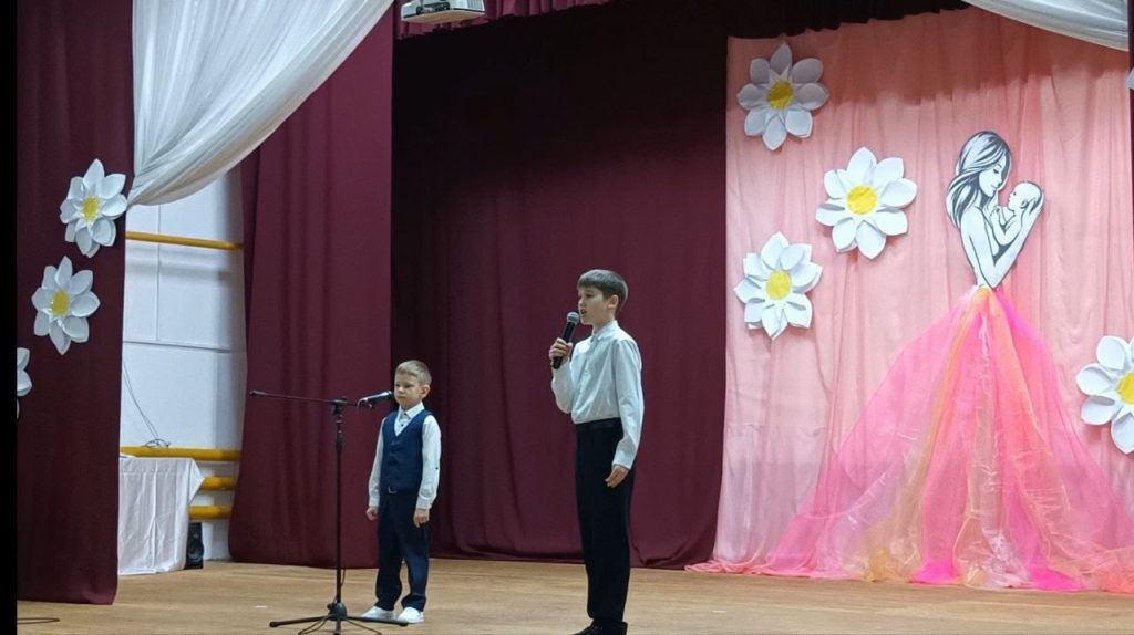 Сольное выступление покорило весь зал! Вокальная группа в составе Алисы Тарасевич и Кирилла Полянских задорно и проникновенно исполнила песню «Добрая, красивая Мама у меня». Браво, ребята!