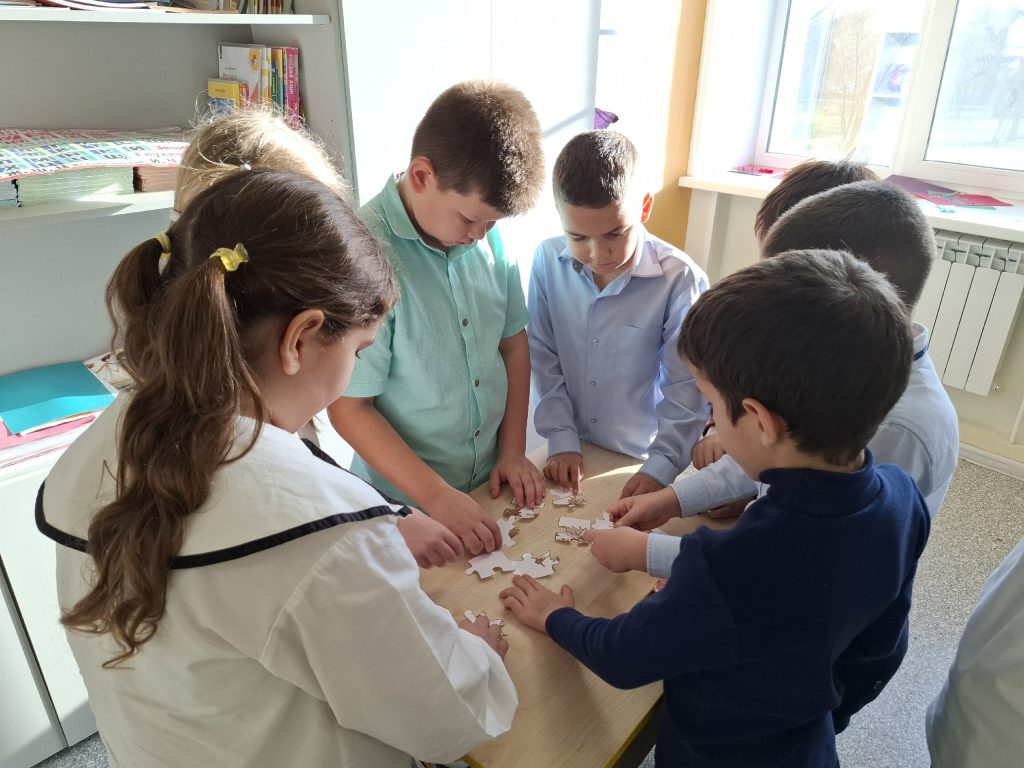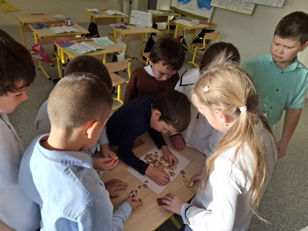 Праздник прошёл по всей школе, охватив учеников разных возрастов. Для самых юных учащихся советник директора организовала увлекательное интерактивное занятие «Мозаика» и «Восстанови картинку». Ребята с большим интересом собирали изображение главного символа страны и восстанавливали его недостающие символы. В игровой форме школьники не только запомнили, как выглядит герб, но и закрепили свои знания о его значении.