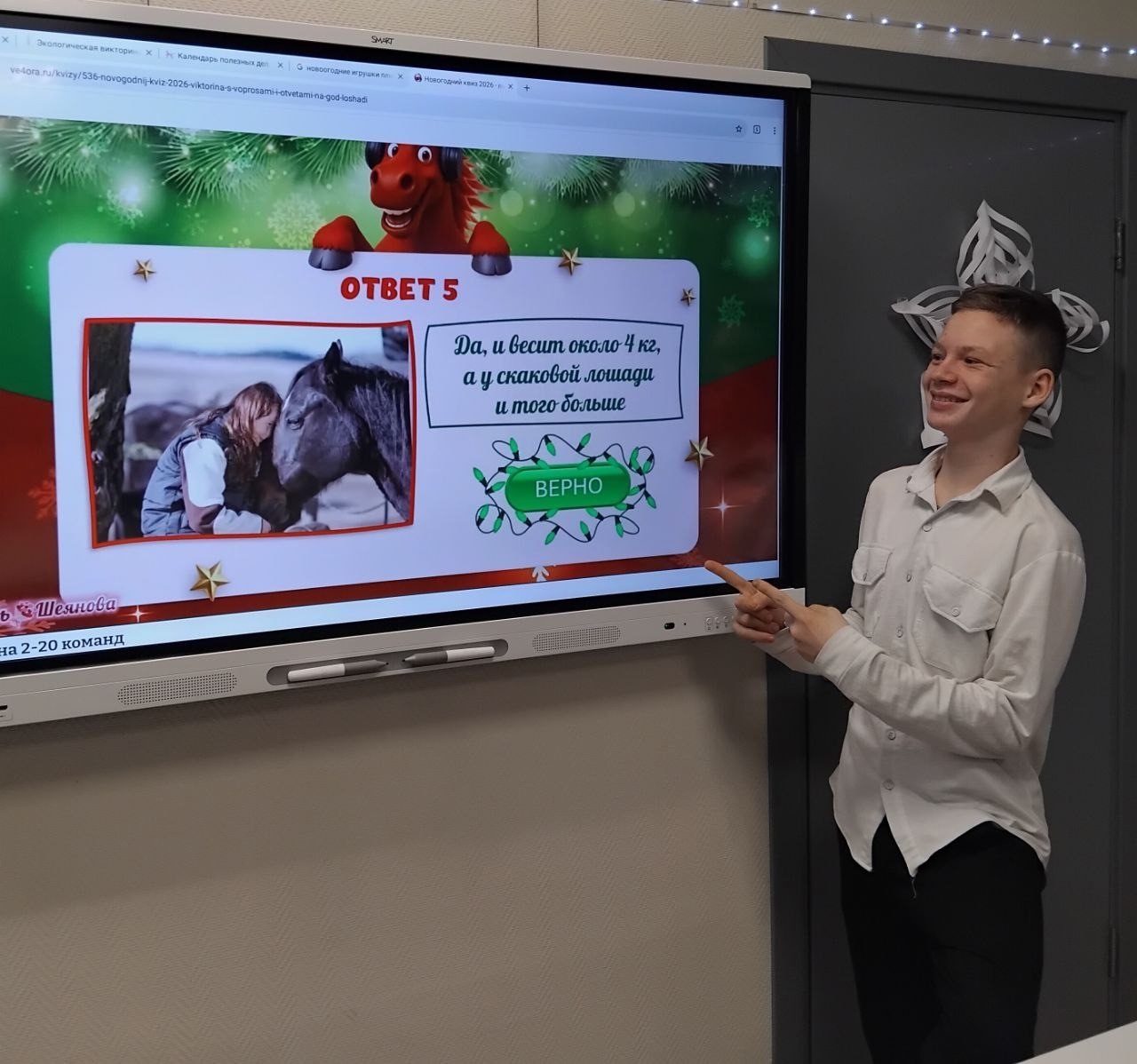 Участники игры весело провели время : пели, смотрели смешные видеозадания, отгадывали мелодии и ребусы, посвящённые символу 2026 года.