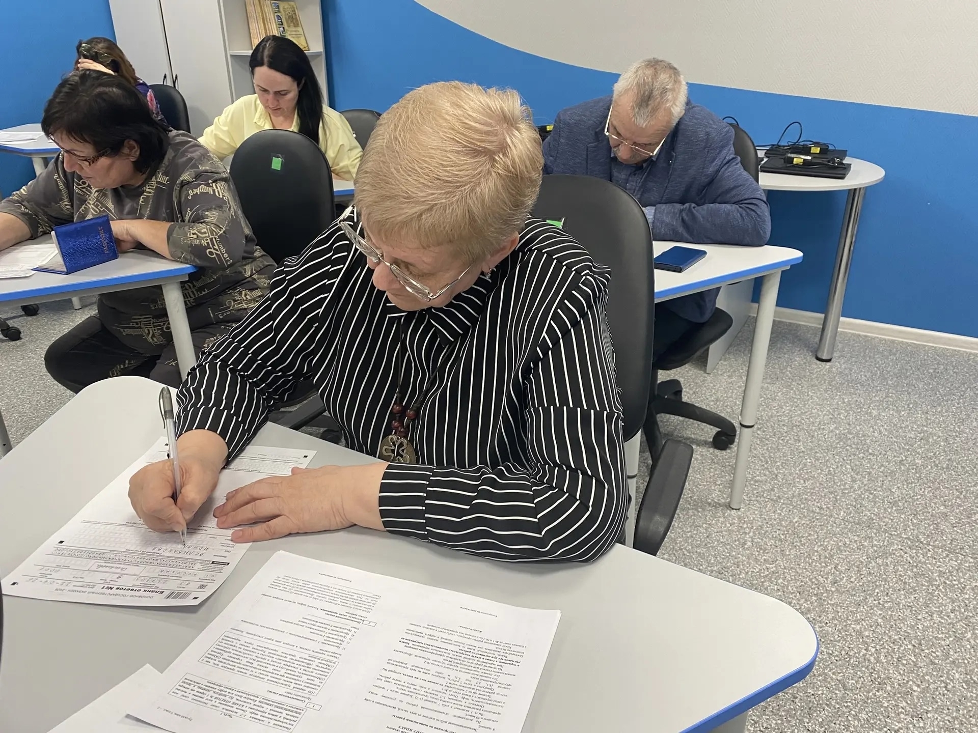 Родители смогли познакомиться с процедурой экзамена, увидеть, как организован вход в пункт проведения экзамена, как печатаются и сканируются бланки, и даже попробовали свои силы в выполнении заданий.